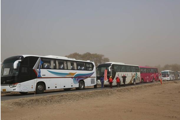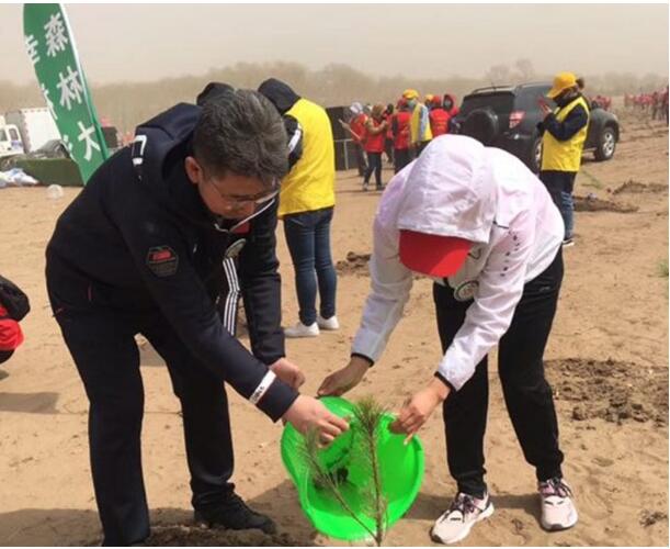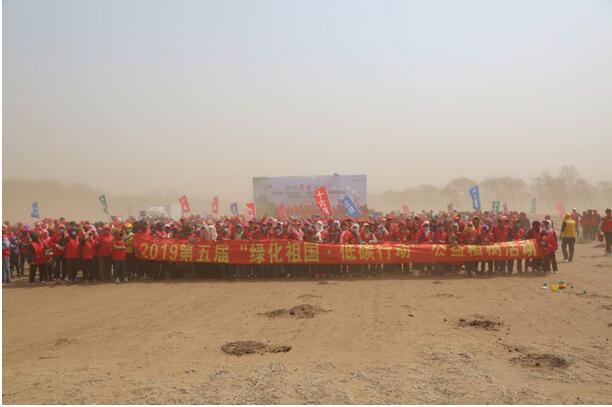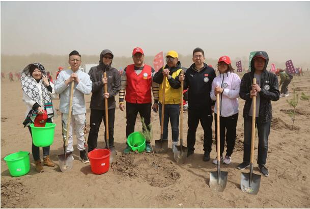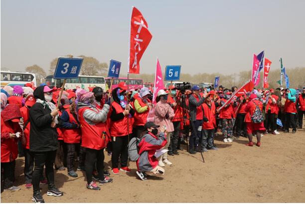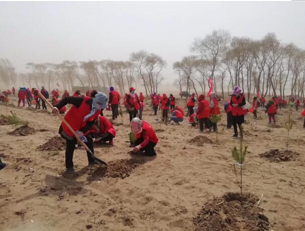 活动当天刮起了大风,咆哮的扬沙着实为植树活动的顺利开展带来了困难。但恶劣的天气并没有影响参与植树人员的热情,大家听从工作人员指挥,有序走到指定的植树地点栽种树苗。