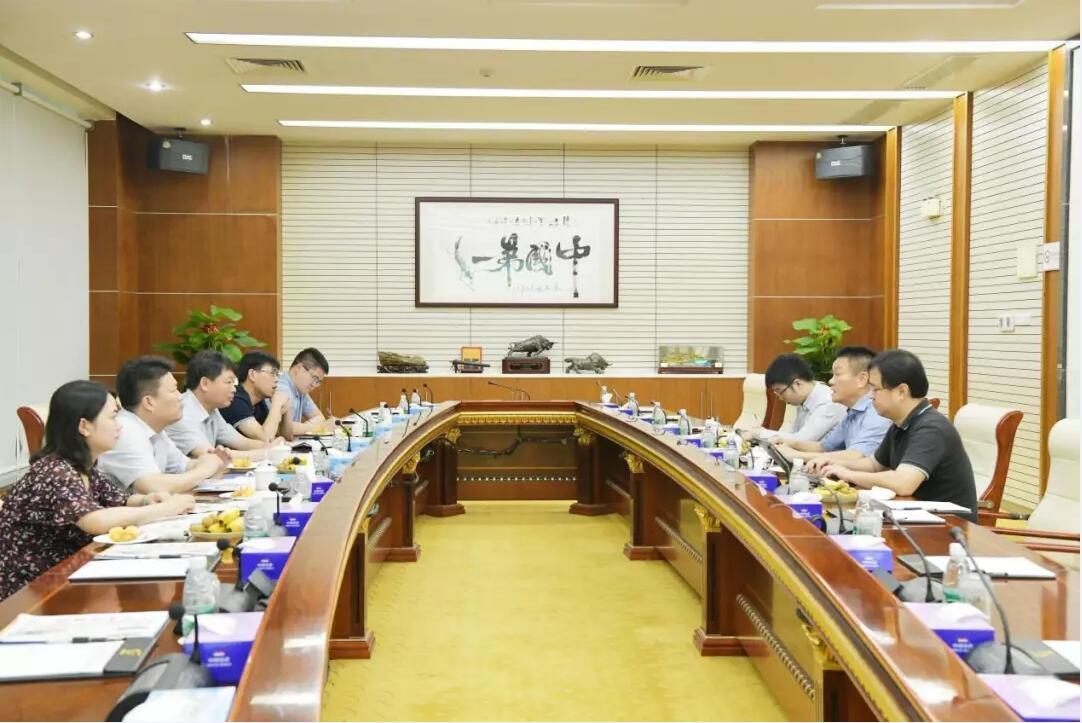 2019年5月21日,湖北省潜江市委常委、政法委书记黎喜斌一行到我司考察,国联集团董事长李忠等人一起陪同接待。