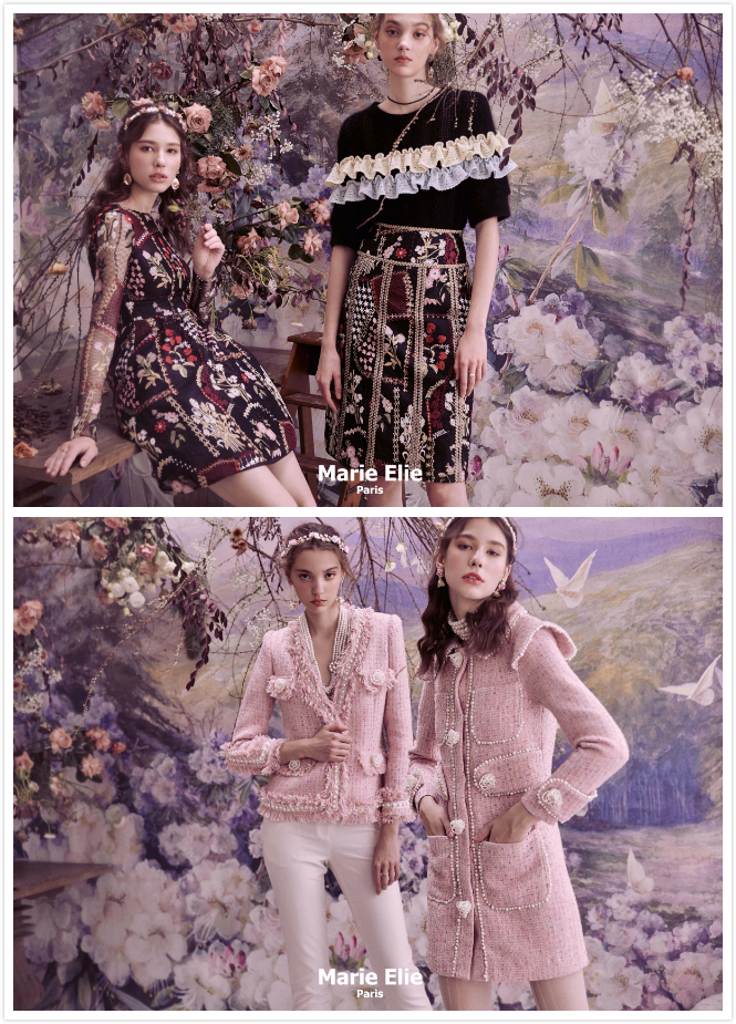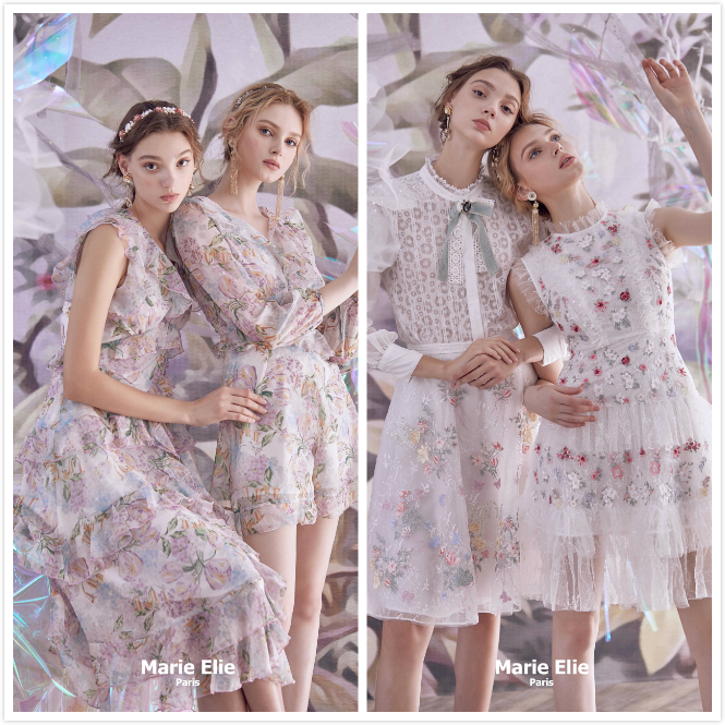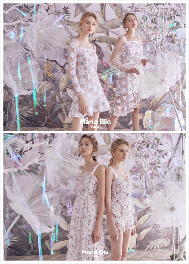 【幻境花园】 Marie Elie 2019 春夏“幻境”系列来自于秘密花园的深邃私语,模特身处在宛如世外桃源般瑰丽缤纷的幻境花园中,温柔色彩结合巧思设计、华贵高级定制布料、欧洲精制手工,维多利亚式样的花纹印花优雅和生动地在服饰上蔓延开来,令人感觉温柔又惬意。