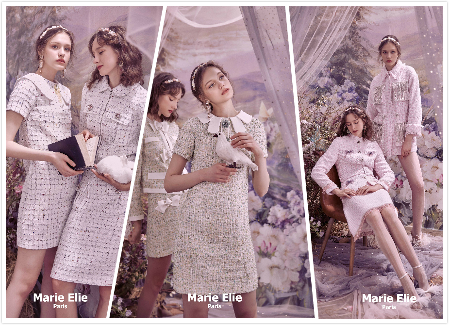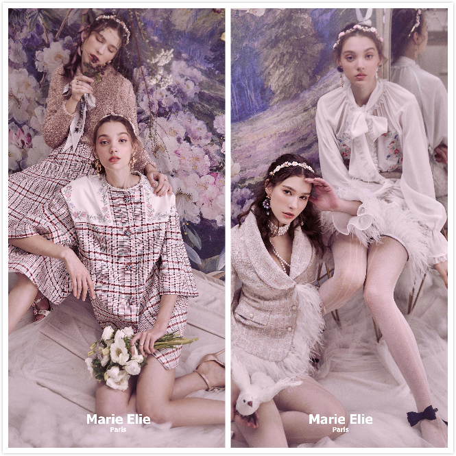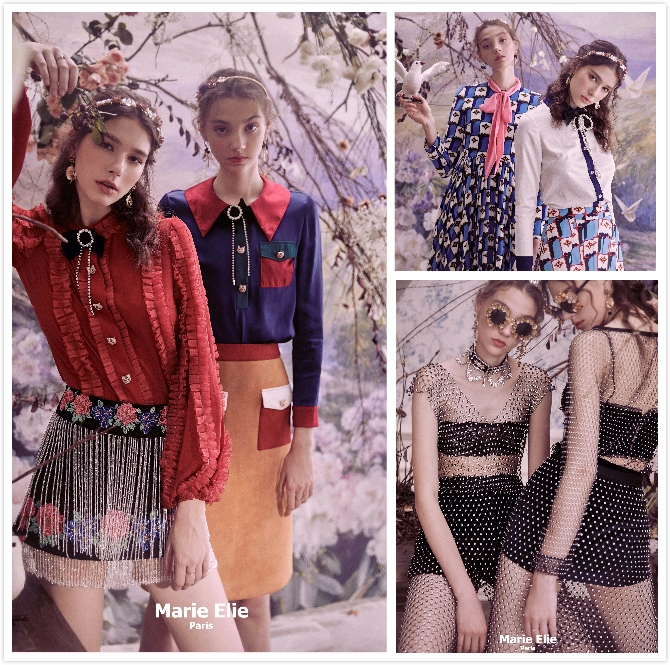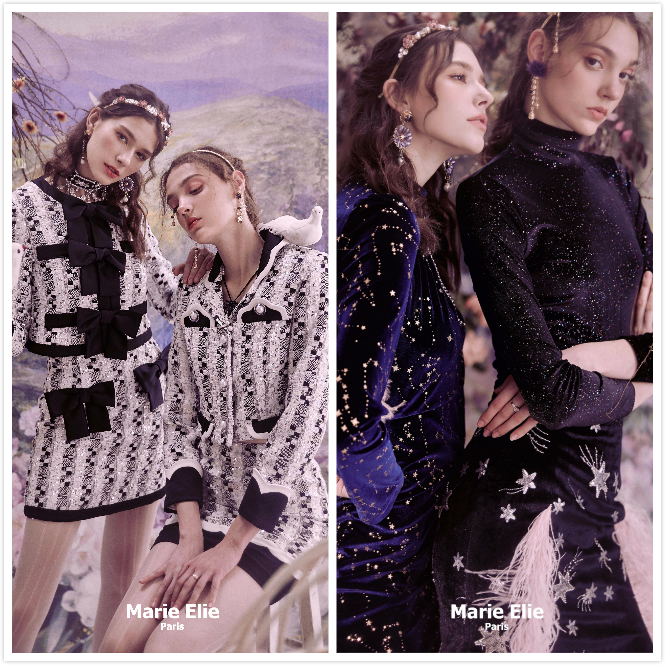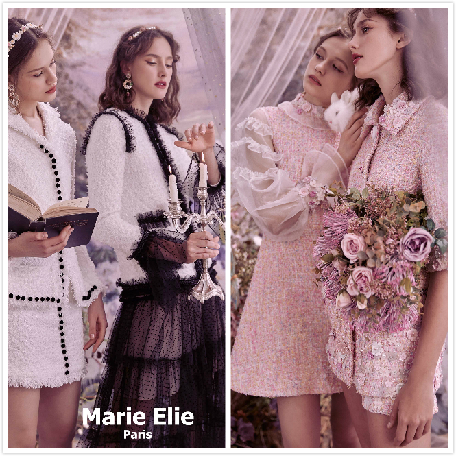 Marie Elie 2019 春夏以四个篇章揭开时光序幕,美好春夏不辜负。 【时空悦动】 Marie Elie 2019 春夏“时空”系列,跳跃时空的框架,演绎极致复古色调,温暖又柔和。以经典黑白色系加入雅蓝、樱粉、铭黄等,重新展示现代感的时尚核心,同时,以宫廷刺绣、蕾丝以及丝质软料的璀璨光泽和浪漫拼接,创造专属Marie Elie 的法式宫廷复古风潮;