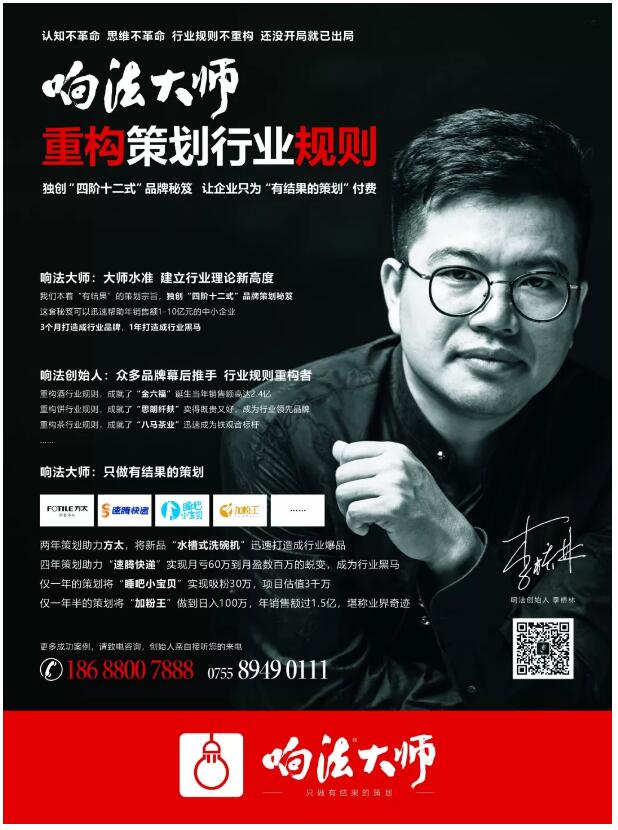 在策划界,李桥林也是大名鼎鼎,曾经一个证券公司的老总与策划界某大师一起吃饭,顺便问道,你认识响法策划的李桥林吗?某大师不假思索回答到,知道呀。这位老总给李桥林打电话,说你这小子可以哦,大师都知道你。 但在企业界,李桥林名声甚微,但是为何一些知名企业还选择他做策划呢? 一方面,他深入市场一线进行实战策划二十年,在中国最黄金的年代时,一直都有他参与建设的身影,他成为世界500强英资企业——亨氏中国本土唯一合作过的策划公司,他也成为中国高端厨具领导者——方太新产品的研发,并且一经推出就成为爆品的方太水槽洗碗机,他更是一系列知名度不高的企业,要钱没钱,要知名度没知名度,要团队没有强有力的销售团队,却也打造出了爆品,而他就是这些爆品的幕后推手。 另一方面,他潜心学习国内外顶尖咨询策划、营销与广告公司的理论体系,并不断结合中国民企实际情况,总结出一系列行之有效的理论方法。 2004年,李桥林第一个提出“网络直销”理论,减少中间环节让利于消费者,从此引领中国电子商务的快速蓬勃发展。 2007年,李桥林首创“忘记产品再营销”理论,不要强调自己是什么,而是强调可以帮助别人带来什么,对企业成功营销影响深远。 2013年,李桥林首次提出“爆品”概念,并在中国品牌节上担任演讲嘉宾,之后完善“爆品营销”理论,拨开营销庞杂的理论迷雾,推动企业从产品销售到爆品塑造之路的快速发展,2019年4月出版《爆品营销》专著,30天荣登当当网新书排行榜第16位。 2018年,李桥林独创的“四阶十二式”品牌秘笈是全行业第一策划系统,真正意义上的理论系统,打破国内策划行业没有独创理论体系的囧局,也是打破全球营销策划概念理论的僵局,在世界建立起策划理论新高度,重构策划行业规则。 在他的理论支持下,众多中小企业首选他,一方面因为价格合理,另一方面落地有结果,成功概率比较高,以至于2004年创办响法策划至今,所有策划方案一稿通过,在这策划界绝对是一个不可超越的奇迹。 2004年,当饼干行业价格越卖越便宜的时候,饼干品牌就有奥利奥一枝独秀,而且价格卖得超贵6.8元,当时大多数饼干价格1-3.5元。这时候,没有强大渠道与广告的企业很难在这里突围。当李桥林领导的策划团队经过对全国10大城市进行消费者调研之后,果断将一款叫纤麸的饼干卖到了9.8元以上,而且卖得越来越好,从年销售几百万到年销售1个亿,之后稳步增长,成为中国本土卖得最贵也卖得最好的本土饼干品牌,并且是这个细分领域的绝对第一品牌,关键是15年后的今天,思朗纤麸饼还坚挺在市场上,仍然卖得很好。 2011年,成立了11年的均瑶乳业一直不温不火,产品一大堆,却没有一款卖得特别好的拳头产品,于是找到了响法团队,全程策划了“味动力”乳酸菌饮品,在当年成功上市,产品一经推出,就以其独特的口感和优良的品质,受到消费者的欢迎,成为中国家庭健康饮品新宠,目前味动力几乎占据均瑶乳业公司营业额的96%。 2012年,著名的江中药业集团想延伸到消费品领域,研究来研究去最终就找到只有纤麸饼做得最成功,没有广告没有知名度却做到了行业第一,且卖得那么贵,于是他们找到幕后策划团队的李桥林,请李桥林为他们想做的高价饼干做咨询,之后迅速推出卖得更贵的猴头菇饼干(后更名为江中猴姑)。 …… 没有爆品就没有未来,是夸大其词吗? 李桥林认为,没有爆品就没有未来,没有爆品就没有前途,没有爆品企业将会死亡。 曾经的强者,它的强无不跟爆品有关: 1、摩托罗拉的强,是因为它有StarTac与V3等爆品 1996年,摩托罗拉StarTac 328是世界上第一部翻盖手机,也是当时世界上最小最轻的手机和唯一可以佩戴的手机,它独一无二的翻盖设计、轻巧便携的体型在当时无机能出其右,当时让摩托罗拉成为炙手可热的巨头品牌。 2004年,失去风头的摩托罗拉再次借助爆品V3成为焦点。 之后再无爆品,最终被联想收购,再无爆品推出,失去光芒。