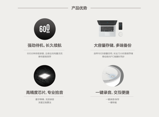 除了以上这三项技能之外,它还自带16G的容量,可存储72小时音频,移动端与PC端可以同步。超长待机,可支持600分钟持续录音,边录边充,断电也能自动保存。 总的来说,此番全新升级的讯飞听见M1,可以实现基于录音整理、记录场景下的几乎所有需求,满足会议、采访、课程培训等多种场景下的录音整理痛点,为文字工作者带来更多便利。