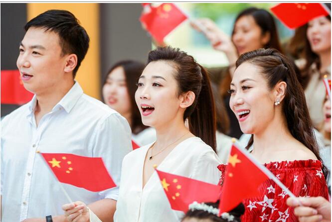 他们手持国旗,神采洋溢,在激昂的乐曲中,满怀自信地唱出对祖国的热爱,还吸引来周围的路人驻足、加入,共同的歌声与掌声中,抒发爱国情,讴歌新时代。这种自信来自70年的不懈拼搏,来自创业浪潮里的奋勇搏击。