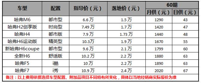 在均衡产品力的保证下,哈弗M6的价格更超值。以指导价为6.6万的哈弗M6都市型为例,新车最低1.5万元就可以全包落地开回家。同时,购买哈弗M6还有4000元置换礼以及4500元金融礼等补贴可享。低总价、低月供、超长贷款周期的金融方案,是哈弗品牌在这个夏天为消费者送上的最好礼物,实在的让利也收获了一致好评。 值得一提的是,在日前国务国六的切换大战中,哈弗M6也不甘人后,与时俱进的推出了国六车型,现已在各大哈弗4S店接受预定,并马上交付到消费者手中。这背后,是哈弗品牌在发动机技术上拥有雄厚累积的有力证明。 背靠哈弗品牌在SUV领域对技术的专业、专注,全球顶尖的生产、制造设备及标准,以及行业领先的售前、售后服务。此次金融促销活动涵盖哈弗品牌全国1000家经销商,除哈弗M6外,哈弗H2创享版、哈弗H4、哈弗H6运动版、新哈弗H6coupe、全新H6、哈弗F5和哈弗F7等旗舰车型、热销车型、全新上市车型均有涉及。