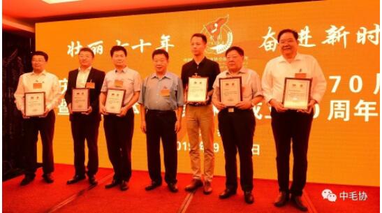 毛小青、谷广联、张 峰、韩晓波 毛小青名誉会长向“先进个人”颁发证书 左起:邵红升、王吉磊、李光明、毛小青、