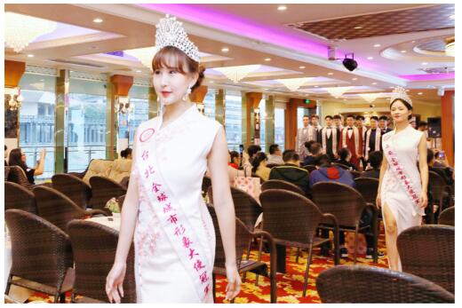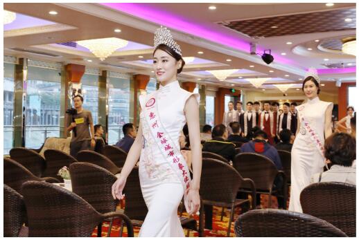 冰青青梅果酒创始人、大中华重庆代表主席陈涛先生 全球城市形象大使创始人张如君博士、大中华台湾代表主席MEI YEN女士 2019全球城市形象大使大中华总决赛入围选手身着礼服优雅亮相,她们作自我介绍,并推介各自代表的城市,展现出青春感和满满的自信,并为重庆这座“网红”城市点赞。选手们对这艘全新游轮是赞叹不已,该轮长68.88米,宽18.00米,船高四层,双体船型设计,外观造型精美,装修装潢豪华,灯饰典雅。美人美景相当益彰,照耀璀璨夜空,美景尽收眼底。 在1个小时的航行中,游轮上节目丰富多彩,盛宴美轮美奂。选手们还近距离观看长嘉汇、朝天门大桥的美景,全览渝中半岛、两江交汇的全景。此次见面会航行体验,来宾和选手们直观、立体、动态、全方位、近距离认识和感受重庆,“5G+VR”全新的沉浸式观景体验,让人流连忘返,度过难忘而美妙的夜晚,为全球城市形象大使大中华总决赛添上浓墨重彩的一笔。