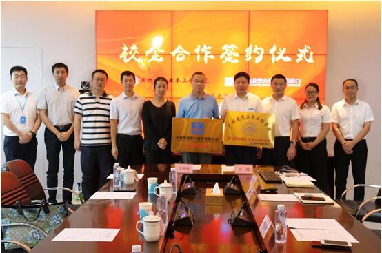 10 月 9 日上午,广州大学土木院党委书记童华炜教授、副院长任凤鸣教授及各专业等主要负责一行5人,赴中建四局六公司签订校企合作协议。中建四局六公司纪委书记李安坤、广州分公司经理方超、党总支书记陈梅英等出席签约仪式。