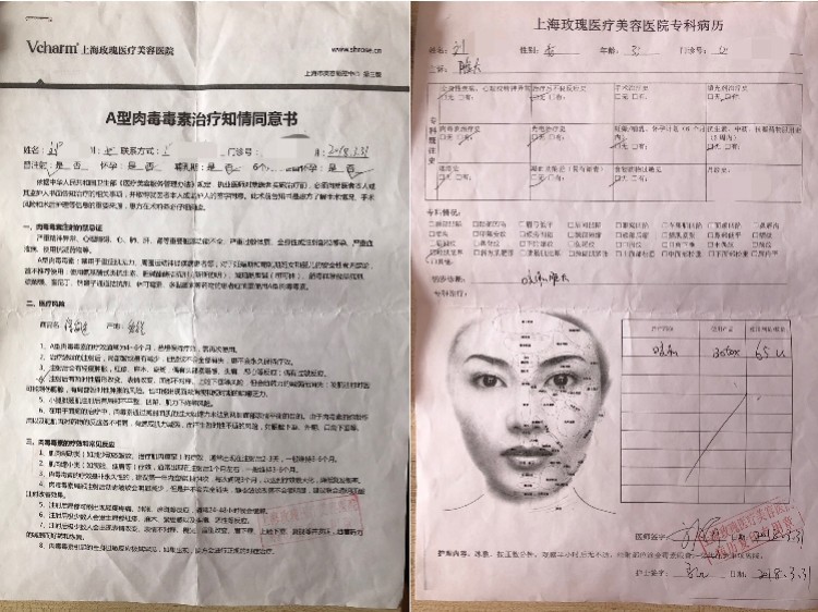 今年9月中旬,刘女士称在上海玫瑰医疗美容医院花3080元打瘦脸针“毁容”,向医院索赔300万仅获1万元的事件,曾刷上微博热搜,引发关注。近日,该事件有最新进展,10月14日,南都记者从刘女士处获悉,她收到上海玫瑰医疗美容医院的民事起诉书,该院起诉其侵犯医院名誉权,案件将于10月23日在上海市静安区人民法院开庭审理。 刘女士此前曾欲以“医疗损害”起诉上海玫瑰医疗美容医院,但她咨询多位律师却被告知,她这种情况只是审美上的“变丑”,难以获得达到医疗损伤程度鉴定的证据,诉讼赢面并不大。未能成功维权索赔,如今却成了侵犯名誉权的被告,刘女士称感到十分委屈。 南都记者了解到,上海玫瑰医疗美容医院,曾用名为“上海玫瑰女子医院”,成立于2005年,但其于2016年才获得《医疗机构执业许可证》,据不完全统计,在过去的14年间,该医美机构涉超过40宗行政处罚,违法内容五花百门,包括未取得医疗执业许可擅自执业,使用非卫生技术人员从事医疗卫生技术工作、诊疗活动超出登记范围,以及对商品作虚假宣传等。 业内有律师认为,在不少医美纠纷中,受害者通常只是“变丑”,若达不到明确的医疗损害级别,存在医疗损伤举证困难,往往导致维权无门。 认为打瘦脸针“毁容”女子向上海玫瑰医美索赔300万元 距离2018年3月31日,刘女士在上海玫瑰医疗美容医院注射一支声称为美国进口保妥适“A型肉毒毒素”(俗称“瘦脸针”)后,已过去500多天,但刘女士说,每天看着镜子中自己奇怪的脸,始终无法释怀。 今年36岁的刘女士,在1年多前收到上海玫瑰医疗美容医院瘦脸针的促销信息,原价上5000元的美国进口品牌保妥适“瘦脸针”,只需要3080元就可以注射。2017年11月19日,她到该院注射了第一针。仅隔4个月后,她又在客服人员的强烈推荐下,选择了显示学历为硕士的注射美容主任,被宣传为“保妥适指定注射专家”的医生刘娟,于2018年3月31日为其再次进行了咬肌注射。