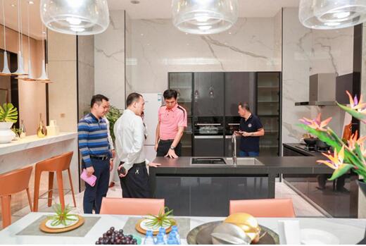 再者,蒙娜丽莎岩板全案设计中心设置了选材中心、全屋体验中心、技术中心、设计中心等多个区域划分,使工作效率大大提升,改变了业界的生态,一体化的服务流程,大幅提升运转效率,更高效专业的观感体验,满足大型市政及民用工程、大平层及别墅家装客户的沟通、设计一条龙服务。 并且,蒙娜丽莎岩板全案设计中心不仅是提供材料、设计、施工全程的全案设计服务平台,也是一个资源共享、合作共融的平台,有助于打破原有的圈层壁垒,让并不紧密关联又或者存在竞争关系的产业开展跨界合作成为可能。