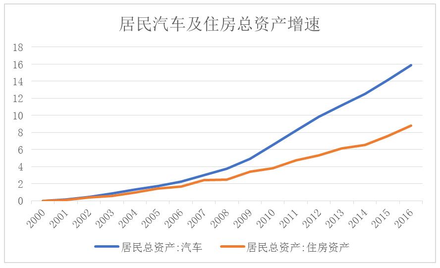 来源:《北京交通发展年报》 而虽然近年来,房价的不断飙涨一直是热门话题,但实际上数据显示,人们对汽车的需求甚至要比号称“刚需”的住房更加旺盛。自2000年以来,居民拥有的汽车总资产的增长要优于拥有的住房资产,折合年化增速达到了20%,这背后反应的是对汽车强劲的需求和未来潜力无穷的市场。