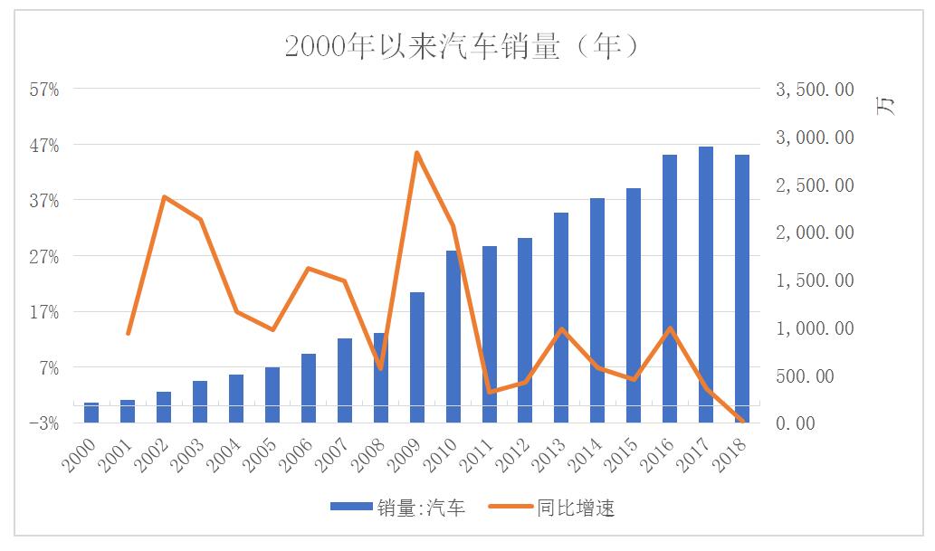 来源:Wind数据 与强劲的购车需求相矛盾的是日益饱和的新车市场。持续增长28年之后,中国新车市场在2018年首次出现负增长,全年销量2808万辆,同比下滑2.8%。在进行车辆管制的一线城市,只有通过小概率的摇号才能获得购置新车的资格;而在二三线城市,车辆的性价比也成为了很重要的考虑因素。