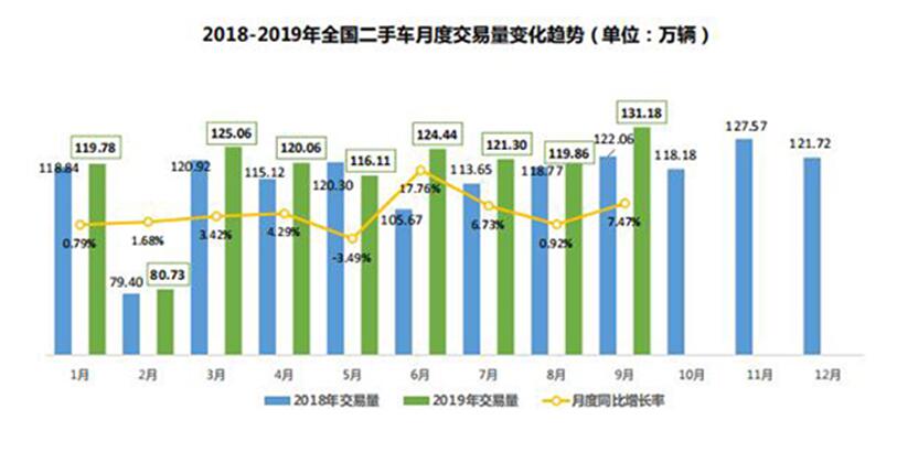 来源:中国政府网 其实从政策面不难体会到,监管的政策指引是希望将汽车市场由单一的新车购置,转化为存量车辆在市场的二次流通,真正发挥私家车的商业价值。同时,对于由供求关系、购买习惯导致的地域间二手车市场差异较大的问题,监管通过取消限迁政策,进一步加强了地域市场间的流通性,进一步提升了买家的消费质量。 在需求端和政策端的双重刺激下,国内的二手车市场未来有望迎来蓬勃发展的时期。根据中国汽车流通协会发布的数据,2019年9月的二手车市场则创下单月销量新高,交易量达到131.18万辆,同比增长7.47%,环比增长9.44%。