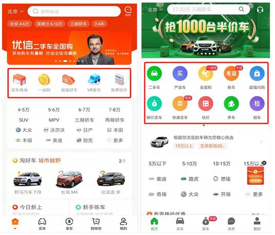 眼看年关将至,新年前将迎来一波二手车购车热潮,外地打拼的人多少攒了些钱,想要买台车回家过年,一方面可以避免由于过年回家的一票难求,另一方面也是给父母长脸,让亲戚朋友看到自己的小日子过得不错。综合下来,既能将手中不多的预算发挥出最大价值,在性价比上最合适的就是二手车了。 伴随国内二手车限迁政策的进一步取消,二手车流通速度进一步提速,很多对二手车感兴趣的消费者,多倾向于在二手车电商平台进行车辆选购,但二手车本身具有“非标准化”,想要买到一台心仪的二手车,除了选一家靠谱的二手车平台交易,有效的车辆筛选同样很重要。 以目前最受欢迎的两大二手车电商平台优信二手车和瓜子二手车来说,两家车商在应用中均加入了多种筛选功能,为用户了解和筛选车辆提供了便利,因此,小编专门对这两家知名但两个平台提供的车辆筛选功能进行了对比,看看究竟哪家更合理,更具选择价值。 一、车辆筛选功能展示:优信更简洁 瓜子最混乱 进入两家二手车电商平台APP后,两家APP中正中间位置均展示了车辆筛选功能。对比来看,瓜子首页展示的车辆筛选功能太多,导致些许功能重复,体验感差。优信二手车首页较为简洁,重点展示了5个最主要的功能模块,根据用户需求来对车辆进行区分,引导用户买车。