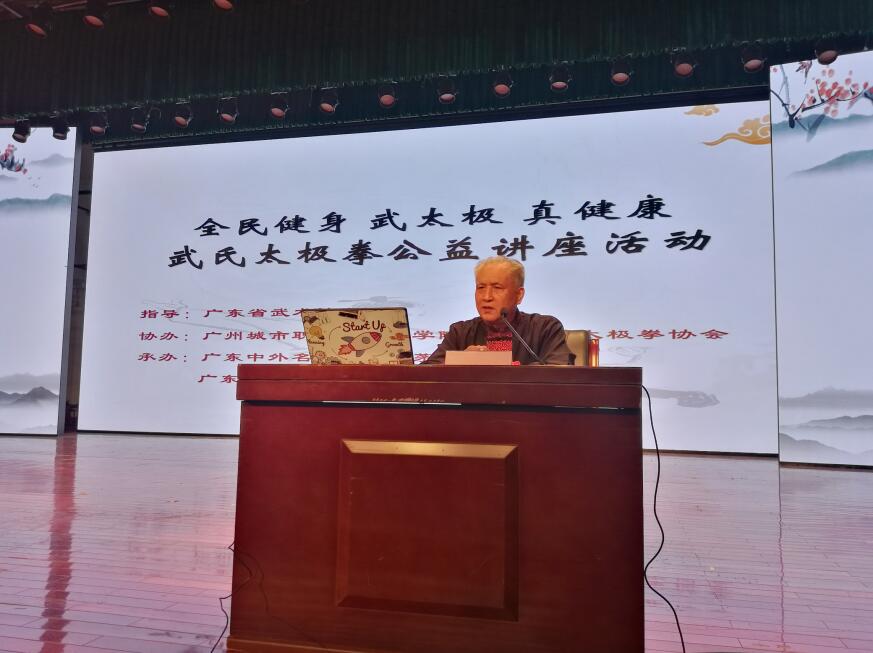 太极拳作为我国优秀传统文化代表、民族体育运动形式,在全民健身运动中发挥着巨大的作用。今年,逢新中国70华诞,全民健身日设立11周年,为贯彻落实《健康中国2030规划纲要》,受广东省武术协会的邀请,在广州市太极拳协会、广中外名酒(贵州茅台酒专卖店)、广州城市职业学院国学院的大力支持下,中国武术八段、中国非物质文化遗产武氏太极拳第五代国家代表传承人、太极名家钟振山先生携广州弟子周谦及教练团队于11月30日在广州城市职业学院进行武氏太极拳公益讲座,12月1日在廣中外名酒城正式落户(扎根)广州。