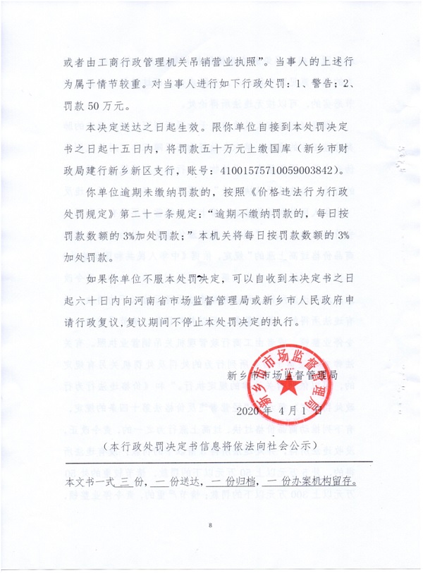 中国质量新闻网讯 近日,新乡市市场监督管理局发布关于大商集团(新乡)新玛特购物广场有限公司的行政处罚决定书(新市监罚字〔2020〕11号)。 行政处罚决定书 新市监罚字〔2020〕11号 当事人名称:大商集团(新乡)新玛特购物广场有限公司 统一社会信用代码:91410700674145935D 法定代表人:韩振文 地址:新乡市卫滨区解放大道(中)218号 在全国防控新型冠状病毒肺炎疫情期间,根据媒体反映大商集团(新乡)新玛特购物广场有限公司超市(以下简称新玛特超市)蔬菜区青茄子(绿把茄子)价格过高上涨线索,办案人员于2020年1月28日上午10点30分对新玛特超市进行检查。 经查实,该超市1月26日10点开始营业,青茄子(绿把茄子)的销售价格为15.96元/公斤,在进价没有发生变化的情况下,10点33分销售价格提高到23.96元/公斤,在13点39分销售价格提高到32元/公斤,在短短3个多小时内,青茄子(绿把茄子)价格翻了一倍。2020年1月28日10点30分检查人员向该超市负责人吕伟光经理出示执法证并向其说明来意,同时要求提供检查所需要材料。下午3点,新玛特超市提供了蔬菜1月26日销售清单和“进货清单”、以及服务员“操作失误”情况说明和超市对部分蔬菜价格上涨情况说明。大商集团(新乡)新玛特购物广场有限公司超市涉嫌违反《中华人民共和国价格法》第十四条:经营者不得有下列不正当价格行为:(三)“捏造、散布涨价信息,哄抬价格,推动商品价格过高上涨的”之规定。 上述事实,主要有以下证据证明: 证据1:国家企业信用信息公示系统,证明处罚主体是大商集团(新乡)新玛特购物广场有限公司; 证据2:新乡地区超市人员编制的照片,证明吕伟光是新玛特超市的店长; 证据3:新玛特蔬菜1月26日销售清单,证明每个时间段青茄子(绿把茄子)的销售价格; 证据4:新玛特超市购买结算价签及网络照片,证明该超市销售的品名、数量、价格和时间; 证据5:照片,证明前去检查的人员和实地检查的情况; 证据6:超市进货清单,证明青茄子(绿把茄子)进价情况(无正规进货发票); 证据7:12315消费者举报平台,证明消费者多人举报新乡新玛特超市蔬菜价格高,对大商新玛特超市依法开展检查是职权行为。 证据8:致歉公示:证明该超市在舆论和政策的威慑下,承认卖过32元/公斤青茄子(绿把茄子)的事实。 2020年1月30日,我局依法向当事人送达《行政处罚听证告知书》(新市监听告字〔 2020 〕11号)。当事人要求举行听证,由于全国处在防控新型冠状病毒肺炎疫情期间,当事人提出延期听证,依法准许。 2020年3月19日上午在本局举行了行政处罚听证会。 委托代理人陈述、申辩意见:1、新玛特超市经营蔬菜系新乡市品绿源蔬菜销售有限公司经营,该公司承包经营具有独立价格自主操作能力,是行为主体。2、根据新乡市品绿源蔬菜销售有限公司提供的进价凭证,青茄子(绿把茄子)在1月26日的进价已上涨,并不是价格没有变化。3、根据《中华人民共和国价格法》经营者享有自主制定属于市场调节价格的权利,春节期间蔬菜涨价是每年的变化规律,单纯的比较价格不能说明问题,得考虑购进时间、进价成本、人工成本等因素综合考虑。4、因公司员工工作失误,导致一台秤具销售正常价格23.96元/公斤,另一台秤具销售错误价格32元/公斤,已采取措施针对以32元/公斤销售的18笔进行价差10倍补偿。5、办案适用法律不正确,应按有违法所得进行处罚。 新乡市品绿源蔬菜销售有限公司负责人李军、超市服务员贾建华参加了听证。 听证主持人及听证员的处理意见及建议:1、处罚主体是正确的。新玛特超市2020年1月26日售出的青茄子(绿把茄子)称重计价标签上清晰载明“大商集团大商超市”字样,同时,该超市结算也是以大商集团新乡新玛特超市进行结算,超市售出的青茄子(绿把茄子)购物打印小票上也清晰载明“大商集团新乡新玛特超市”字样,均未标示当事人所指认的“新乡市品绿源蔬菜销售有限公司”进行销售的任何信息。该销售行为,应定性为大商集团(新乡)新玛特购物广场有限公司的销售行为,并承担相应的法律责任。因此,本案对大商集团(新乡)新玛特购物广场有限公司实施行政处罚是正确的。 2、新玛特超市青茄子(绿把茄子)价格1月26日是在进价未变的情况下发生涨价。第一,在案卷中,新乡市品绿源蔬菜销售有限公司提供了1月23日、1月26日、1月28日向新玛特超市供货的销货清单,这三张清单中,1月26日销货清单编号为2923591,1月28日销货清单编号为2923589,晚进货的销货清单编号小,早进货的清单编号反而大,说明新乡市品绿源蔬菜销售有限公司的销货清单存在问题,不具有真实性。第二,2020年1月31日,办案人员对新乡市品绿源蔬菜销售有限公司法定代表人李军进行询问,李军的供述和听证期间的供述前后矛盾,且未能提供其2020年1月26日早上去郑州市万邦采购青茄子(绿把茄子)的事实证据,对其在听证会上的供诉不予采信。第三当事人称售货员调秤调错了没有充分证据,不予采信。第四新玛特超市1月26日蔬菜销售清单中明确显示,每次涨价后均有若干笔交易,无论是什么原因引起的涨价,员工调价行为都是其职务行为,新玛特超市两次涨价行为是存在的,进销差价率远高于正常水平,哄抬价格的行为也是存在的。办案机构认定新玛特超市哄抬价格的行为,是在青茄子(绿把茄子)涨价前进价不变情况下认定的,是有充分证据的,是属实的。 3、法