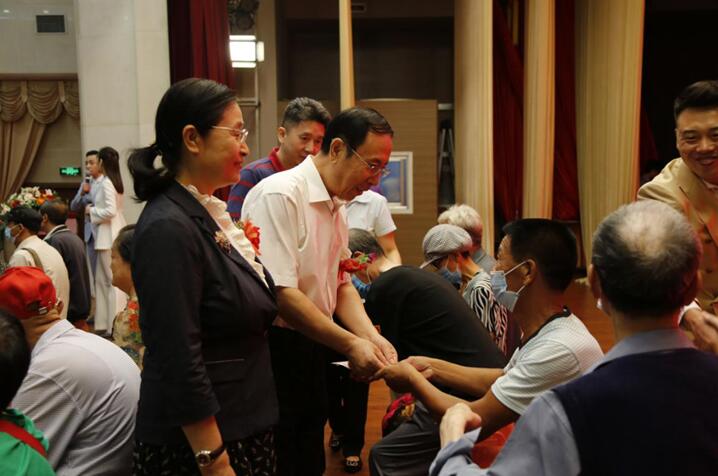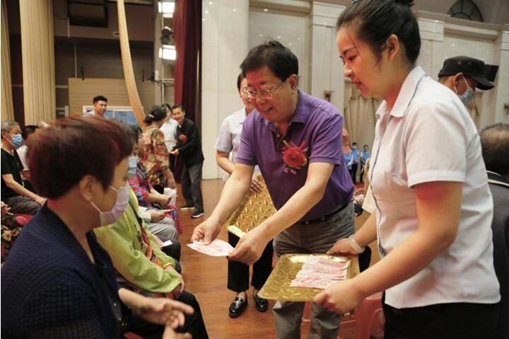 于建伟理事长 马艳竞主任 王润俊主任等领导为到场30位受捐老人发放帮扶金 领导与受捐赠老人合影 |