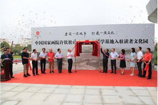 (众嘉宾为许钦松入驻读者文化园揭牌) 将为惠州民众提供美术公益服务 昨日上午,中国国家画院许钦松山水工作室教学基地也入驻读者文化园。致力于打造惠。州文化产业新地标的惠州读者文化园项目开园时间初定于2022年,许钦松⼭⽔⼯作室教学基地的入驻,无疑也为该园区烙上了第⼀层⽂化属性。 “在广东,惠州是我来的次数最多的地级市,我都想做一名惠州人了。”谈及选择在惠州读者文化园建立许钦松工作室教育基地的缘由,许钦松表示,惠州风景优美,人文厚重,为画家们提供了很好的创作素材。一直以来,惠州市委市政府对文化艺术发展也是十分重视,舍得投入,惠州的文化发展越来越好。“读者本身是一个文化品牌,有着很强的文化吸引力。惠州读者文化园,也是一个大规模的、文化产业聚集的地方,多方缘由,大家‘一拍即合’。”