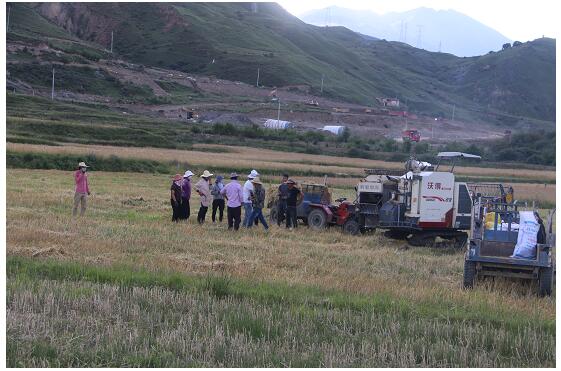甘孜州农科所食用菌专家唐明先表示,道孚县丰富的灌木资源、良好的生态环境有利于椴木黑木耳生长,再加上椴木黑木耳栽培技术成熟,简单易学,在注重生态保护、适度间伐、有序发展的情况下,将带来显著经济效益。 2014年脱贫攻坚战打响后,上甲村启动了20亩黑木耳种植项目。星星之火,可以燎原。截止目前,甲斯孔乡种植规模达360亩74万棒,实现产值260万元,人均增收500-1000元,增收比率占人均收入的38%。 金秋九月,青稞摇曳。行走在道孚县内,耳边不时响起“轰隆隆”的机器作业声,眼前翻涌着一朵又一朵金灿灿的麦浪,鼻尖缭绕着醉人的清香……在甘孜州道孚县鲜水镇亚洛加村,三三两两的藏家女子正在小麦收割机后,清扫着机器掉下的黑青稞麦粒,纷纷绽放出幸福的笑脸。