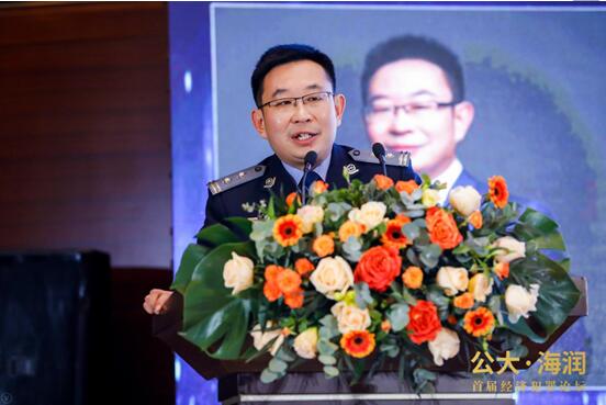 (图注:公安部经侦局期货犯罪侦查处长曹海波) 公安部经侦局期货犯罪侦查处长曹海波发表了闭幕致辞,对首届“公大·海润经济犯罪论坛”的交流成果进行总结,并预祝此后每年的论坛顺利举办。 结语 为期半天的首届“公大·海润经济犯罪论坛”圆满落下帷幕。在金融风险仍须加强防控的大背景下,中国人民公安大学与海润天睿的战略合作将助力经济犯罪理论学术研究、搭建经济犯罪防治交流研讨平台、培养高质量法学人才,为维护社会主义市场经济秩序作出更多贡献。 |