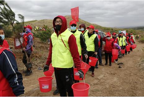 志愿者们植树的热情为大地带来了温暖与春色