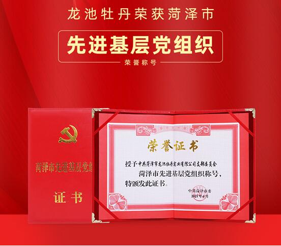 2021年6月,龙池牡丹荣获菏泽市“先进基层党组织”荣誉称号。