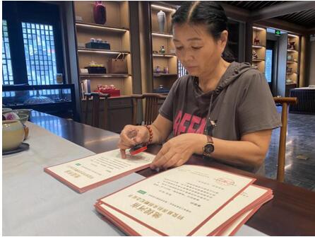 许昌市工艺美术协会秘书正在盖章
