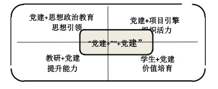 图 2 基于党建读书会特色的“2341”理论学习机制 (三)挖掘融合路径 ,构建双融双促机制 教师党支部通过统筹谋划专业思政大格局 ,研究党建工作向教学延伸 、向学 科专业延伸和向学生实践延伸等的路径与方法,构建持续推进党建与专业思政建 设同向发力、深度融合的 “双融双促”机制[5] 。 首先,发挥党建引领,建立 “党建+”模式。如“党建+思政教育”,党支部 通过 “三会一课”开展教育者先受教育活动 ,组织教师和党员集中学习与培训课 程思政与专业思政理论相关知识 ,提升教师育人责任与育德能力 。如党支部组织 开展 “做新时代‘四有好老师’,建设学习型党支部”的主题党日活动,将专业 思政作为教师党支部建设的活力“因子”,嵌入党支部特色 “党建读书会”中, 深耕支部特色内涵,形成了生动的主题党日示范案例;再如,党支部以“破解专 业思政建设的难点”为题组织学术研讨会,鼓励教师积极申报教科研项目,固化 研究成果,充分发挥党员教师的模范带头作用 。其次,建立“+党建”模式,支部 通过引领教师挖掘学校党委中心工作和重点任务的党建元素,激发师生的先进意识、责任感和使命感,积极投身到教育教学改革和人才培养各项工作中,用实际 行动践行立德树人根本任务。如党支部通过开展“教研+党建”活动,邀请相关 校内外专家进行讲座,持续提升教师教育教学改革理论水平;聚焦练好课程思政 的三项基本功, 支部组织开展“教学观摩+党建”教学评比活动,由党员教师带 头展示课堂教学中如何有机融入思想政治教育元素,充分发挥榜样的“示范”作 用,打造课程思政优秀教学团队 ;再如,通过 “学生工作+党建”组织开展党建 引领的大学生科技立项与大学生学术论坛等活动 ,增强师生党支部的共建成效 , 完善基于价值引领、促学生成长的专业思政建设长效机制 (详见图 3 所示) 。