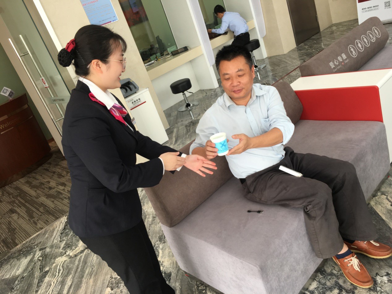 “华兴银行 用心为您”是广东华兴银行中山分行的服务理念,服务理念深入每个华兴人心中,以专注执着,责任心强的服务态度,为您带来暖心服务。 在一次客户接待中,客户因忘记网银登录密码转不了账而着急来到网点办理业务,外面天气炎热,看到客户汗珠直落,大堂经理暖心的给客户递上一杯开水和面巾,引导客户就坐并了解客户的业务办理需求,随后大堂经理引导客户在自助设备操作,很快协助客户完成密码重置和货款的支付。业务办理完后,客户紧张的心终于松了下来,在等候区与大堂经理交谈起来,连连竖起的大拇指称赞华兴银行服务快捷、高效、暖心,并表示以后业务都选择到华兴银行办理,资金也转入华兴银行。 大堂经理感谢客户的支持与肯定,向客户表明“华兴银行 用心为您”是广东华兴银行中山分行的服务理念,有客户的支持,广东华兴银行中山分行将继续用心努力,为客户提供专业、暖心的服务。