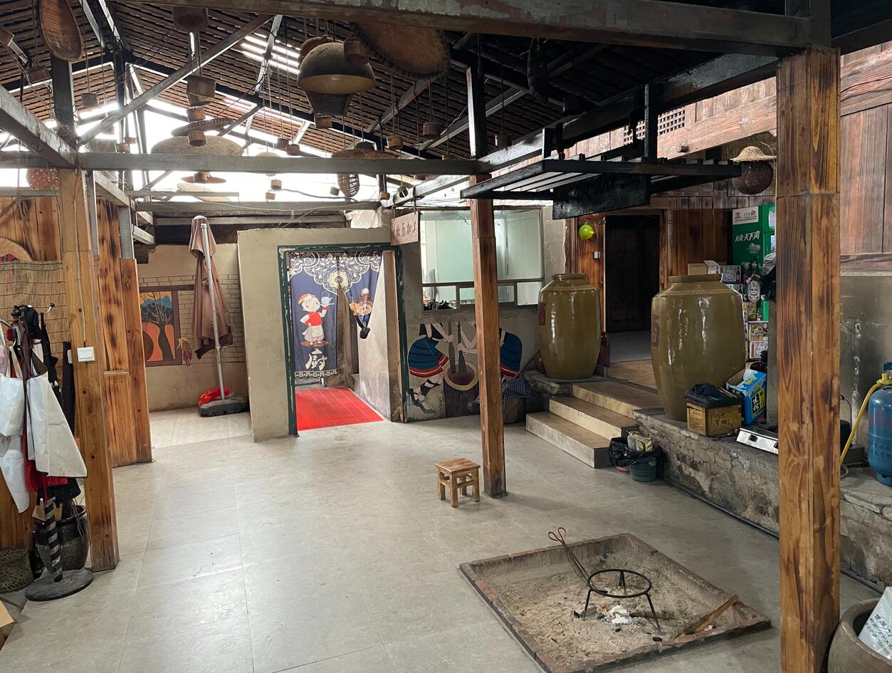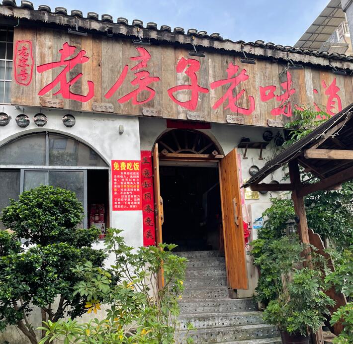 在荔波樟江畔上的宋府别院江畔美宿不到五十米的路边,有一个不显眼且有点古璞的餐厅,我每次路过都没有留意过,只是一天偶然看到餐厅门口墙壁上贴着免费吃饭的告示,才引起了我的注意。