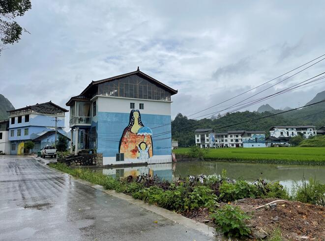 一排排破败老屋“脱胎换骨”,变为充满艺术气息的文化建筑,一幢幢墙绘壁画的民居与青山交相辉映,如诗如画……眼前这个村庄在艺术家的匠心打造下完成了华丽的变身,从几年前的“废旧房”变身“文创房”,“空心村”变身“国际艺术村”,令人抚手称奇!