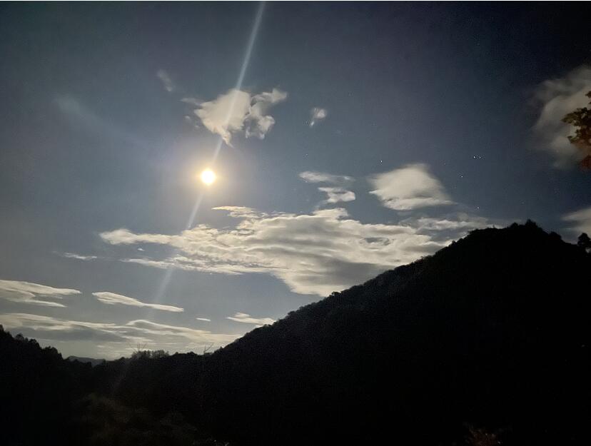 酒足饭饱后,我们驾车回城。漆黑的夜晚,悬崖峭壁上的山路看起来很是狭窄,弯弯曲曲看不到尽头。我紧盯着前方的路面,回想到今天的听闻,被两旁时不时闪过的黑影惊得心脏怦怦跳。友人见我不安的样子,笑着指了指车窗外,我抬头望去,啊!月亮圆圆似银盘,月光皎皎如碎银,照亮了整个夜空,也照亮了回城的路。我走,月亮也跟着走。