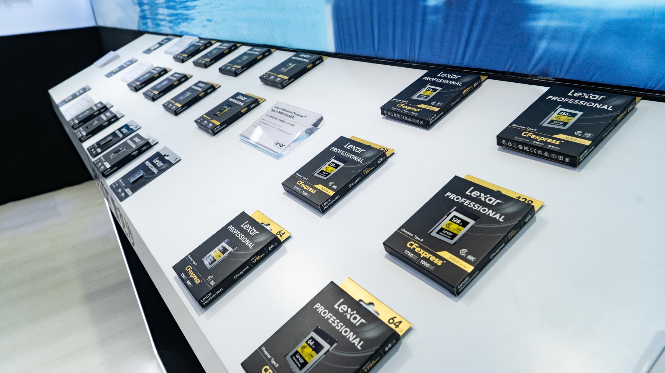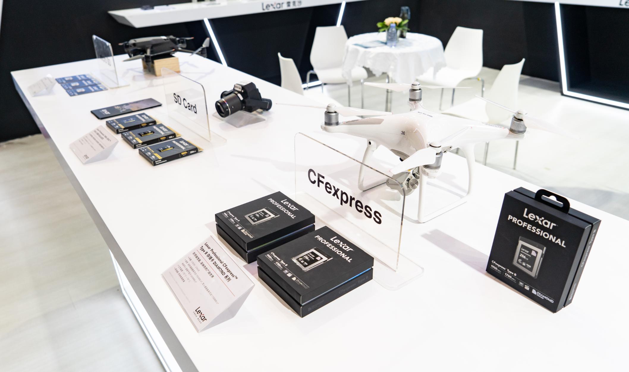 (展会现场) 本次展会上,Lexar雷克沙不仅分享了针对消费类用户推出的存储卡、U盘、读卡器、固态硬盘等各类存储设备,也带来了满足无人机行业发展需求的存储产品及相关成功案例,如广泛应用于消费级无人机、运动相机等设备的1066x microSD存储卡SILVER系列, 8K RAW视频拍摄的CFexpress Type B 存储卡DIAMOND系列,森林消防、电力巡检等专业无人机领域的中高端影像卡1800x SD存储卡 GOLD系列、测绘应用领域的高速固态硬盘模组等。