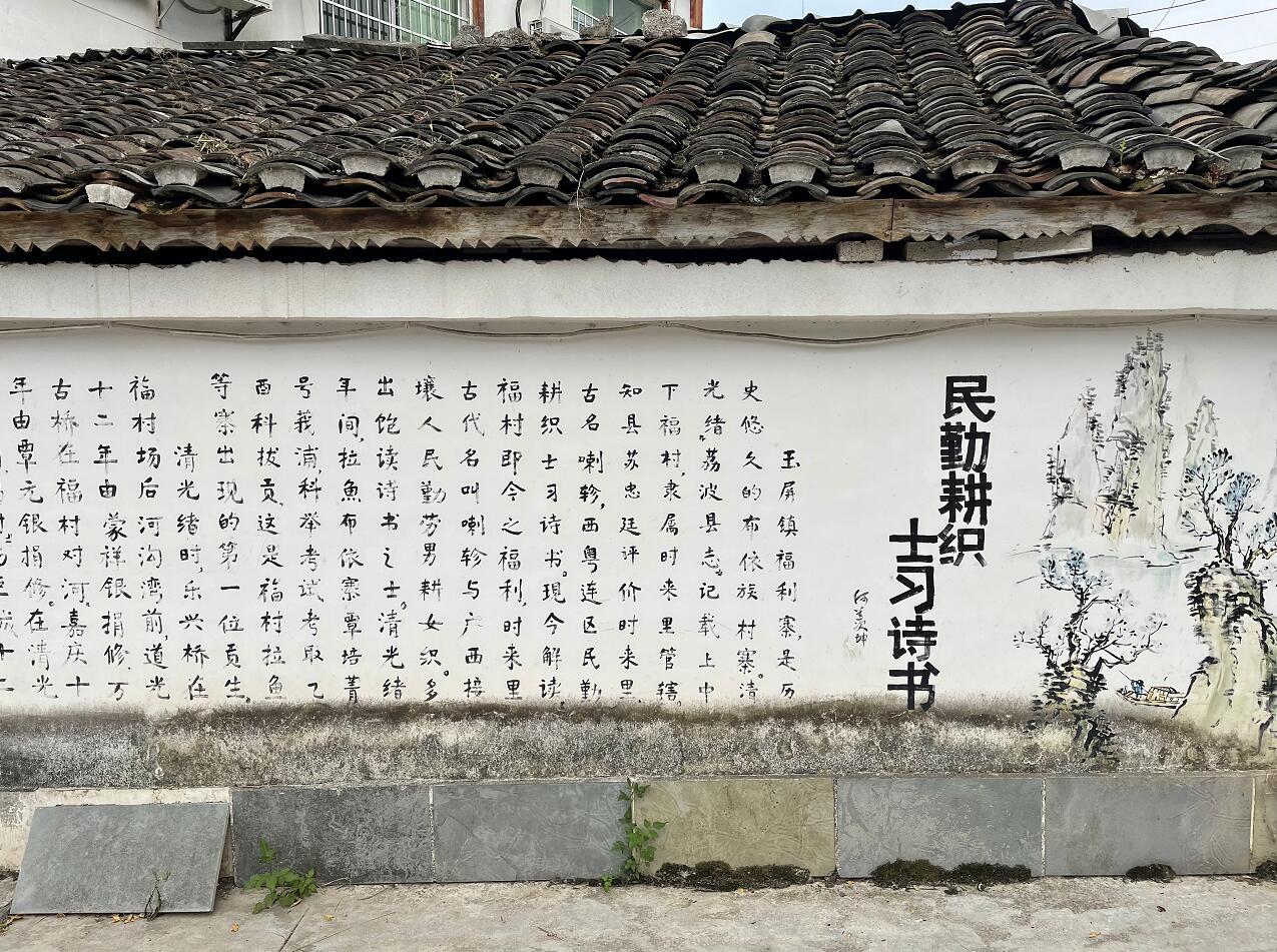 在朋友的带领下,我们沿着村中大路往前走,村里的房屋上随处可见这种诗情画意的墙画以及劝诫族人勤耕织、习诗书的诗句。中秋佳节正值丰收的季节,村里面洋溢着中秋佳节的气氛。各个笑面相应,让人感觉十分温情
