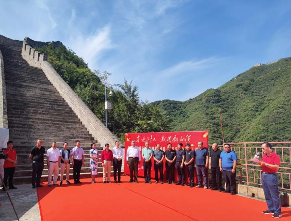 作品前合影 近年来,我们依托‘长城文化带’先后推出了‘梅花长城’、‘本草长城’、‘七彩长城’、‘红色长城’文化长城四部曲,并使之成为了怀柔长城的历史底片、长城旅游的名片、长城精神的芯片。景区党支部在上级党委的领导和支持下,认真学习党的十九大精神,以‘宣讲红色故事,弘扬红色文化,传承红色基因’为己任,结合当地实际,挖掘当地‘平北抗日第一枪’的红色资源,创办了‘长城红馆’,为党员和青少年提供一个回顾历史、不忘初心、牢记使命、传承红色基因的学习阵地,让红色基因代代相传。