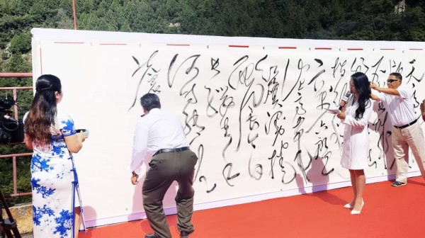 开幕式现场 2022年9月9日,由北京吉量腾达文化中心主办;北京响水湖长城旅游有限公司、北京晟元鸿业文化传媒有限公司承办;安徽泾县三星纸业有限公司、北京雁西湖会务有限公司、长城红馆(北京)文化传播有限公司、人民之窗(北京)文化传媒有限公司、中网数智科技(北京)有限公司协办的“喜迎二十大 献礼新征程——孔维阳先生现场创作巨幅书法作品《清平乐•六盘山》”活动,在北京怀柔的响水湖长城上隆重举办。