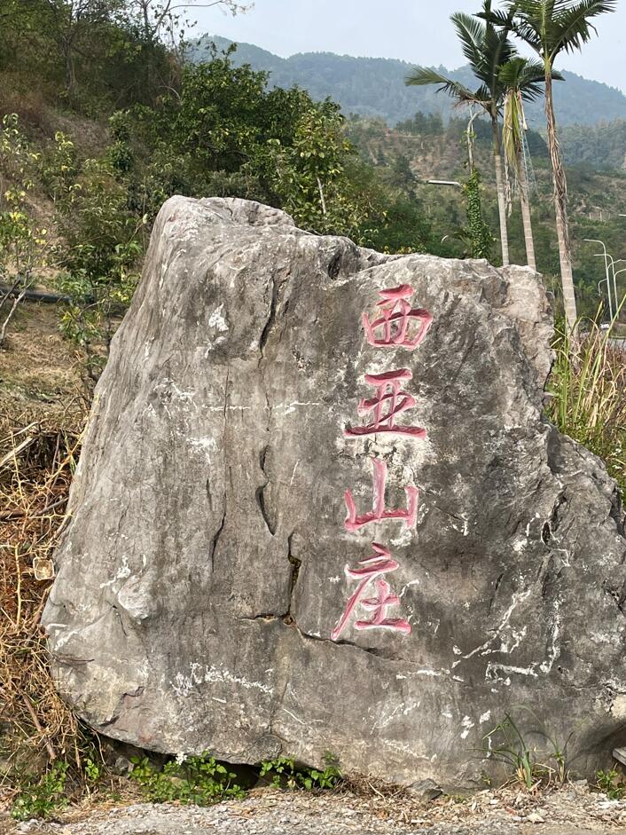 闲来无事,朋友的公司组织活动约我去荔波郊外的西亚山庄一起游玩。在阳光明媚的早上,我们一班人来到西亚⼭庄秋游,这里景⾊宜⼈。首先映入眼帘的是铿锵有力的四个大字——西亚山庄。运笔中省去尘世浮华以求空远真味的意味。