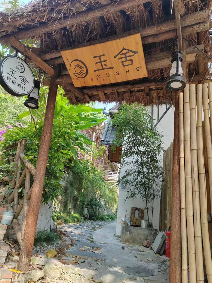 不加修饰的台阶,不像大城市里那种用光亮的瓷砖铺成的台阶。竹子与盆栽的修饰,显得更加清幽。玉舍很安静,没有吵吵嚷嚷的声音,也没有车辆的躁音,只有轻柔的微风和叽叽喳喳的虫叫声。微风拂过,竹叶跟着翩翩起舞,仿佛为我们演奏一首绝妙的秋之歌。