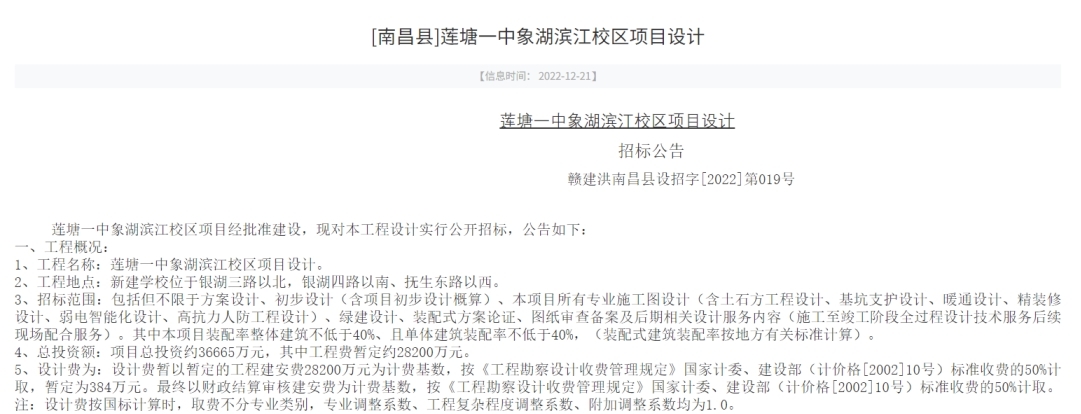 莲塘一中象湖滨江校区(高中)位于银湖四路以南,银湖二路以北,项目占地面积84658平方米,将于2023年启动建设,2025年3月前竣工交付,学校规划63个班级,可容纳学生3150人,主要建设内容包括高中部教学楼、初中部教学楼、综合楼、科技楼、体艺楼、学生宿舍、食堂、人防地下室、地下社会停车场以及室外运动场地总图工程等。