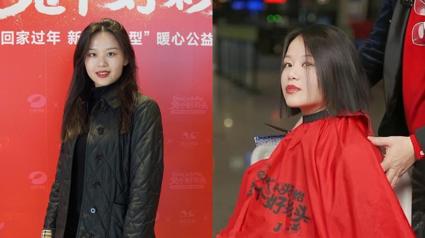 在机场工作的美女小姐姐,围观了很久,鼓起勇气让顾老师把一头长发剪短了,老师打趣说她一直没找到男朋友的原因就是选错了发型,所以挑发型的眼光跟挑男朋友一样。小姐姐说新年脱单就是自己的新年愿望,看来这次要托顾老师吉言了。