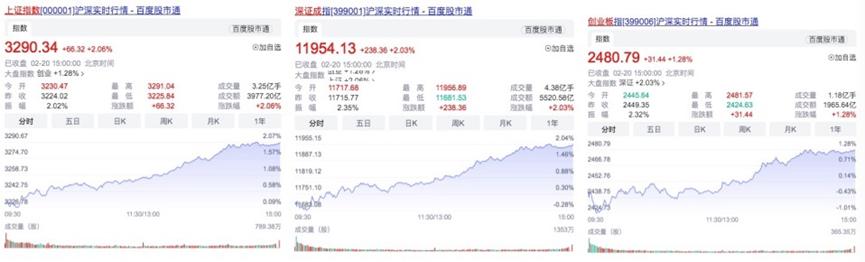 2 月 20 日,全面实行股票发行注册制制度规则发布后的首个交易日,上证指数、深证成指、北证、科创板、创业板集体上涨。资本市场正在用自己的方式回应新制度的发布。