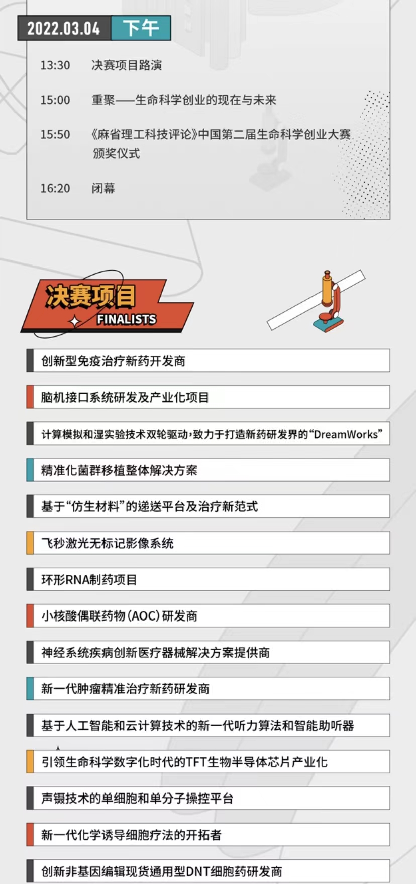 图:ATAC 降解途径丨来源:Avilar Therapeutics 官网 除了新型递送系统、基因疗法、蛋白降解技术等创新疗法外,AI+ 领域因 ChatGPT 的出现迸发出更多火花,创新医疗器械领域手术机器人和智能穿戴设备也正在进行快速迭代,而这一切的发展离不开早期前瞻性的眼光和持续的投入。 如今,在多学科交叉的大背景下,越来越多的基础研究更快地进入商业化阶段,作为重要创新主体的企业如何将最先进的技术与科学新突破结合,成功实现科研成果转化和产业化,将直接影响着生命科学行业的发展前景。这里既需要科技创新的自身驱动,也离不开资本、政府、园区、产业等各方力量的支持。 为了挖掘生命科学产业“新势力”,无锡市滨湖区人民政府联合《麻省理工科技评论》中国共同举办“第二届生命科学创业大赛”。 本届大赛现场,我们邀请到了:霍德生物创始人&CEO 范靖、鸣石峻致创始人吴子岳、星亢原创始人&CEO 陈航、水木未来联合创始人&CEO 郭春龙等首届“生命科学创业大赛”获奖团队代表将现身大赛决赛现场,在“重聚:生命科学创业的现在与未来”圆桌上,向大家分享团队的近况、最新进展及未来计划。 本届大赛由无锡市滨湖区人民政府、无锡太湖国家旅游度假区管理委员会、《麻省理工科技评论》中国主办,无锡生物医药研发服务外包区管理处、无锡市滨湖区科技局、无锡市滨湖区科技人才创新中心以及 DeepTech 承办。大赛聚焦“技术驱动”,关注未被满足的临床需求,希望挖掘那些具备高精尖技术及团队等综合实力的潜力项目。与“路演+评分”形式的传统大赛不同,本次活动比赛和论坛性质兼具,旨在打造出一个海外内 BioTech 创新信息汇集、资源流通、交易撮合的能量聚集地。 作为本次活动承办单位之一的无锡生物医药研发服务外包区,是无锡市滨湖区“543”产业体系中生命健康产业布局的核心园区,园区以新药研发、高端医疗器械研发及产业化、医疗服务等领域为主要方向,集聚了费森尤斯卡比华瑞制药、药明康德、药明生物、辉瑞制药、健适医疗等一批行业领军企业,构建起从新药研发到器械研发、从医疗服务到高端康养的全产业链链条。 生命科学创业大赛始终聚焦生命科学产业里的前行者,持续打通产、学、研、创、投通道,搭建平台见证创新力量的崛起,共同推动生命科学产业发展。3 月 4 日,我们无锡滨湖见。
