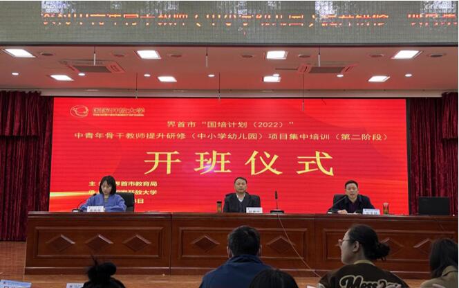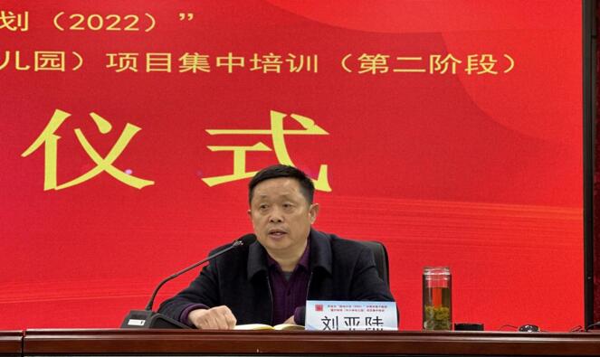为深入贯彻《安徽省教育厅 安徽省财政厅关于组织实施中小学幼儿园教师国家级培训计划(2021-2025 年)的通知》(教师函〔2021〕4 号)、《中小学幼儿园教师培训课程指导标准》等相关文件要求,进一步提升界首市农村骨干教师的教学研究能力,界首市“国培计划(2022)”中青年骨干教师提升研修(中小学幼园)项目集中培训(第二阶段)于4月7日-12日顺利开展。 本次培训由界首市教育局主办,国家开放大学承办,参训学员共45名,其中幼儿园教师16名,小学语文教师15名,初中语文教师14名。 4月8日上午举行了开班典礼,界首市教育局党组成员刘亚陆在开班典礼上作动员讲话。他强调全体教师要充分认识此次培训的重要性,要求所有教师要珍惜机会,切实增强学习的主动性,严格执行此次的培训要求,做勤学善思、勤思善悟的教师。