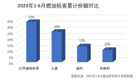 2023年汽车市场不断升温,作为中国经济发展晴雨表的轻客市场也是回暖明显。作为轻客行业的领导者,江铃福特轻客始终以遥遥领先的销量成绩雄踞行业榜首。从今年1-6月燃油轻客新车销售数据来看,江铃福特轻客6月份额高达34%,比第二名高了9%,与第二、三、四名的轻客品牌拉开极大的销量差距,“领头羊”地位无可撼动。