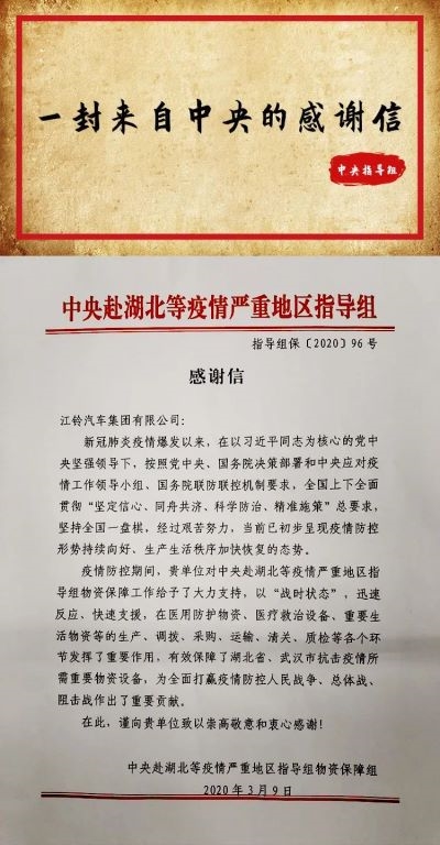 行业第一、“战疫第一车”、救护车份额超80%,沉甸甸的荣誉和数字背后,是心怀家国情怀的江铃福特,对“产业报国”使命的生动诠释,也再次印证“能力越大、责任越大”。江铃福特将勇担使命再出发,为社会传递向上向善力量! |
