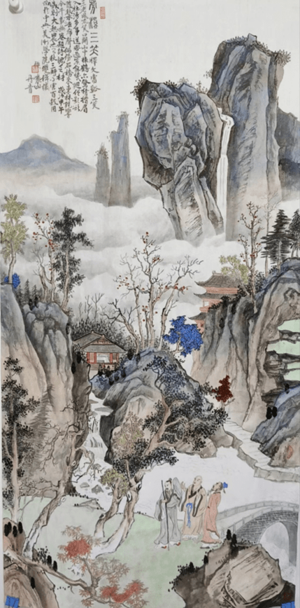 侯峻山《虎溪三笑》138×68CM 国画