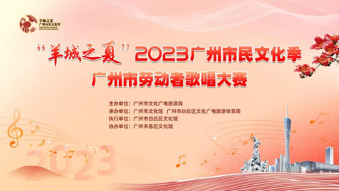 为反映新时代劳动者的精神风貌和健康的理想追求,全面推进构建现代公共文化事业的高质量发展,满足我市广大劳动者日益增长的文化需求,由广州市文化广电旅游局主办,广州市文化馆、广州市白云区文化广电旅游体育局承办,广州市白云区文化馆执行,广州市各区文化馆协办的“羊城之夏”2023广州市民文化季——广州市劳动者歌唱大赛总决赛将于2023年11月21日在白云区久米空间开赛。