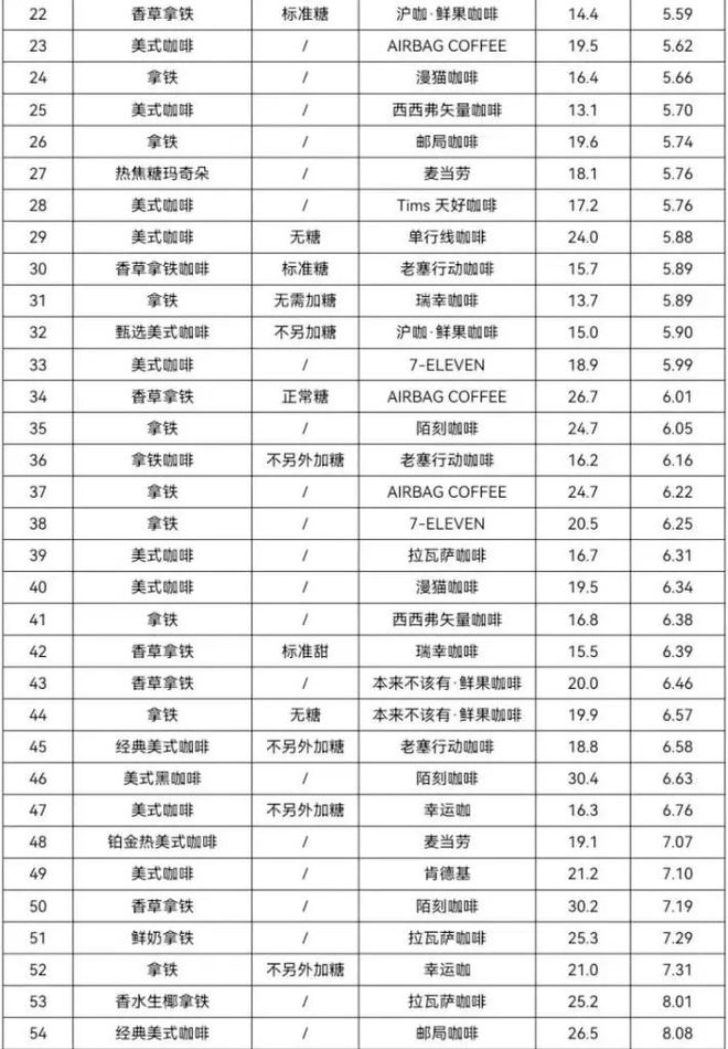 图为部分抽检样品 本次比较试验,对福州市20家咖啡销售单位的59款现制现售咖啡进行采样(其中线下30款,线上29款),样品涉及瑞幸、星巴克、 幸运咖、COTTI COFFEE等20个市面主流品牌,包括了美式咖啡、拿铁和风味拿铁等不同品类,基本涵盖市面在售的现制现售咖啡产品。 本次比较试验针对样品的能量、碳水化合物、蛋白质、脂肪、反式脂肪酸、总糖、咖啡因、丙烯酰胺等8个项目进行测试。从本次测试结果情况看: 1.59款样品均未检出含有反式脂肪酸(低于0.0013g/100g的检出限)。 2.在蛋白质、脂肪等项目检测中,大部分产品检出量较稳定,基本符合国家健康饮食推荐要求,咖啡中添加的奶及奶制品质量较好。 3.在能量、糖分、咖啡因、丙烯酰胺等检测项目中,各家产品检测结果差别较大,值得研究探讨和消费者关注。 在本次59款样品中,能量检测结果有高有低,其中一杯咖啡能量高于一个成年女性一天所需能量的1/6;样品中有2款美式咖啡和2款拿铁标称为“无糖”,但经检测,其中2款拿铁样品含糖量超过标准对“无糖”规定的最高限量值;咖啡因检测显示其中4款样品的咖啡因含量低于200mg/kg,在提神作用上略显逊色;值得注意的是,在本次59款样品中均检测出低含量的2A类致癌物“丙烯酰胺”(目前我国暂未对咖啡中丙烯酰胺有限制性或禁止性规定)。