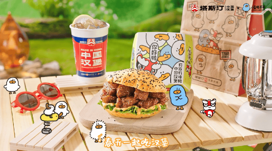 ![]() 开创“中国汉堡”这个全新赛道后,塔斯汀明确了自己的发展方向,致力于做中国人自己的汉堡品牌,并于同期启动“东方味觉觉醒计划”。之后塔斯汀开启狂飙模式,街头巷尾出现越来越多的塔斯汀中国汉堡店。 除了堡胚的创新,内外兼修的塔斯汀在内馅上也下了不少功夫,以讲究五味调和的中式馅料开拓出一条创意口味之路。“五味调和”是中国饮食核心理念,指调配酸、甜、苦、辛、咸五种味道,也是中国汉堡在研发制作上遵循的重要原则。这种创新,远远超出了“口味翻新”的常规操作,借力了一个民族演化千百年、根深蒂固的饮食习惯。 据了解,塔斯汀推出了多款具有地域特色的汉堡,如麻婆豆腐中国汉堡、北京烤鸭中国汉堡、鱼香肉丝中国汉堡,以及4月全新推出的春日限定新品“有孜有味鸭中国汉堡”等,使汉堡的味道无限贴近“中国胃”,不断拓宽中国汉堡的产品边界。