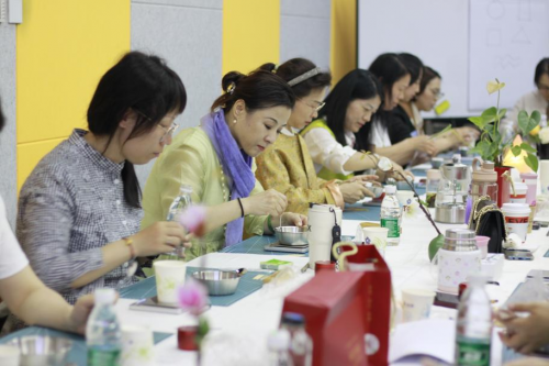 (张德芬空间&青柏传香 左 青柏 右 青柏亲传弟子珑澜) 此次活动是张德芬空间与青柏传香的首次研习沙龙,也是张德芬空间在创新沙龙的新方向和新主题——香学研习沙龙:以香见道,悦己、养生、修心,旨在通过一体化的品牌体验方式招募合作主理人,沙龙设计包括青柏香品牌介绍、产品品鉴以及融入五行元素的绘画体验等环节,让参与者深入理解品牌文化与产品品质。 活动中,青柏老师首先向大家介绍了香的历史与文化背景,让在场嘉宾对香学有了更为深入的了解。随后,青柏老师详细介绍了各种香的种类、制作工艺以及品香的方法,让在场的每一位嘉宾都仿佛置身于一个充满香气与禅意的世界。她详细讲解了药香的独特之处及其制备方法,分享了自己在香学研究中的心得与体会。