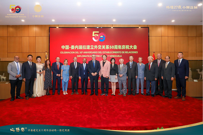 礼赠外宾 见证两国深厚友谊 50年岁月洗礼,锻造了中委友谊的深厚感情、构筑了两国人民的民心相通、更开创了双方务实合作的新局面。站在建交50周年新的历史起点上,相信中委两国人民将会以半世纪的真诚友好作为坚实底气和强劲动力,继续坚定携手前行,创造更加辉煌灿烂的又一个50年! 百余位相关代表共同出席活动,包括外交部拉美司领导、中联部拉美局领导、委内瑞拉主要外交官和委在华人员代表、拉美部分驻华使节等多位相关代表。